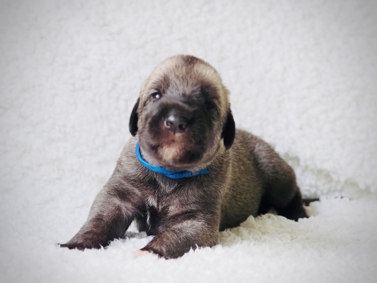 pes světle modrý obojek - Genesis of Irish World - Slovensko